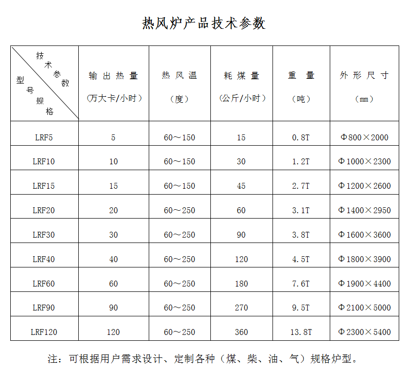 注:可根據用戶需求設計、定制各種(煤、柴、油、氣)規(guī)格爐型。