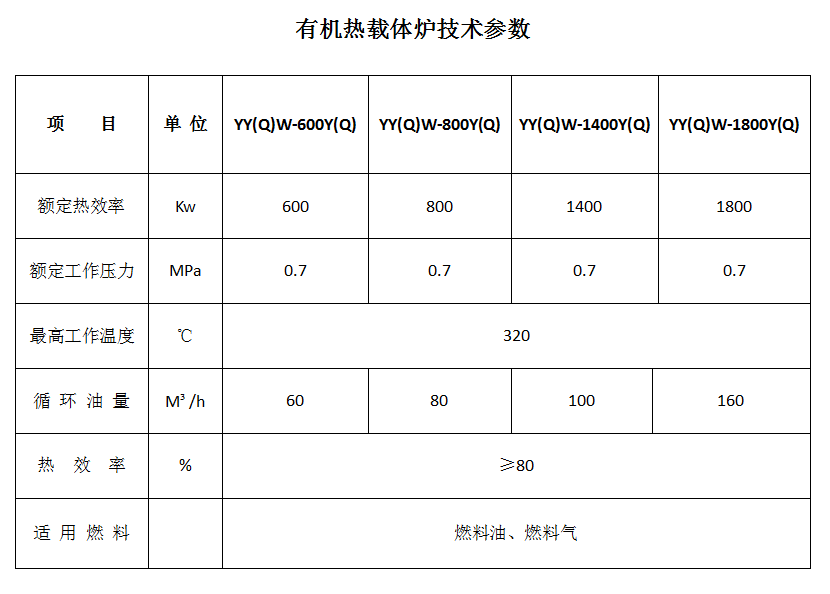 有機(jī)熱載體爐性能特點(diǎn)及技術(shù)參數(shù):